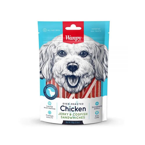 تشویقی مخصوص سگ برند ونپی مدل Chicken Jerky&Codfish Sandwiches